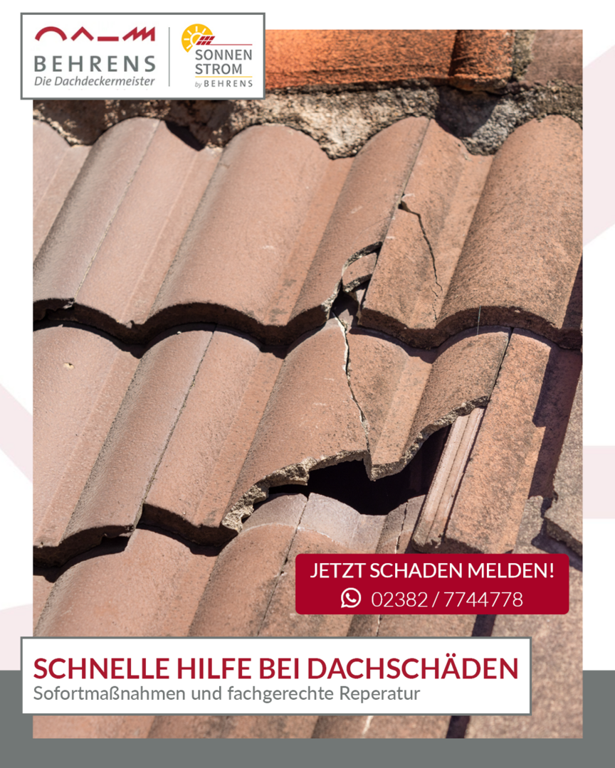Unser Ziel ist nicht nur die schnelle Instandsetzung, sondern eine Lösung mit Bestand. Wir erneuern schadhafte Ziegel, dichten Anschlüsse an Gauben, Schornsteinen und Kehlen ab und setzen Metallbauteile fachgerecht instand. Behrens - Die Dachdeckermeister arbeiten materialspezifisch und nach Stand der Technik, damit Ihr Dach wieder zuverlässig schützt.