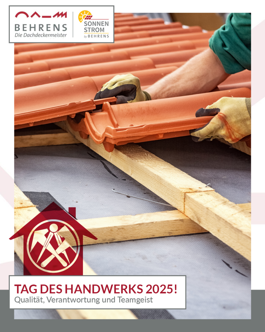 Am Tag des Handwerks am 20. September rücken Menschen und Leistungen in den Mittelpunkt, die unser tägliches Leben zuverlässig tragen. Wir bei Behrens – Die Dachdeckermeister stehen seit Generationen für präzises Handwerk, saubere Ausführung und verlässliche Beratung. Dieser Tag ist für uns Anlass, die Bedeutung echter Meisterarbeit hervorzuheben und zugleich Danke zu sagen für das Vertrauen in unsere Arbeit.